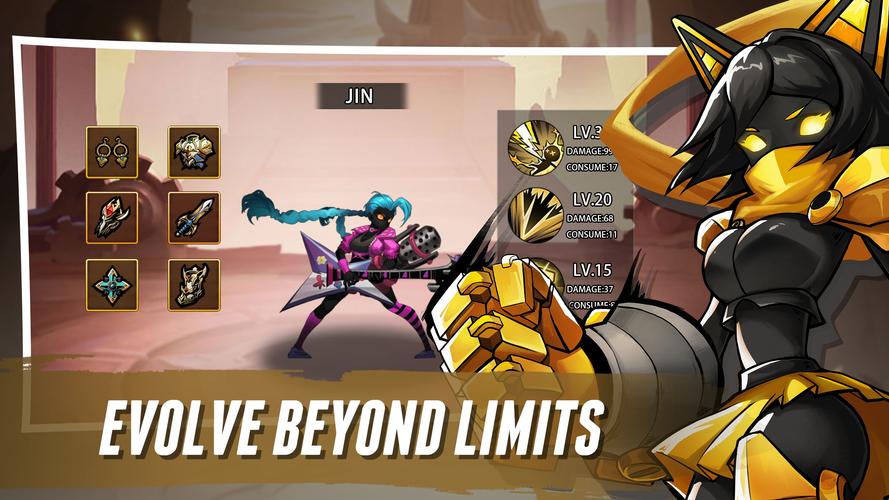 從分佈在5個派系中的70多名棍子戰鬥機中進行選擇。從《憂鬱的刀片殺手》到特里莎(Trisha)的強大法師,再到龍劍客,每個英雄都帶來了獨特的能力。了解他們,升級它們,並製定您的最終團隊以主導排行榜。